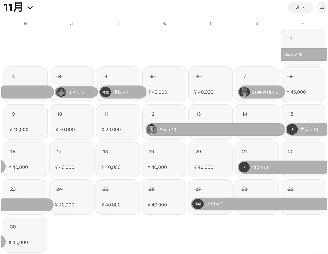 Airbnb予約カレンダー