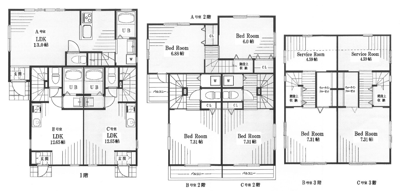 - A号室2LDK、B.C号室2SLDK / 194.72㎡